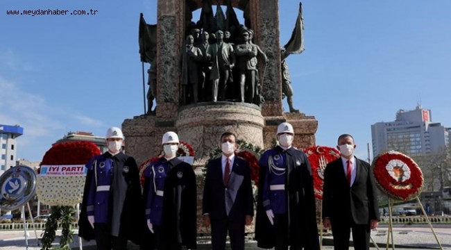 İmamoğlu, resmi törenin bitiminden sonra, zabıta mangası eşliğinde getirilen İBB çelengini Cumhuriyet Anıtı’na bıraktı. İmamoğlu’nun ardından sırasıyla CHP İstanbul İl Başkanı Kaftancıoğlu, İYİ Parti İstanbul İl Başkanı Kavuncu ile DSP, AK Parti, Genç Parti ve Atatürk Vakfı yöneticileri de anıta çelenk koydu.