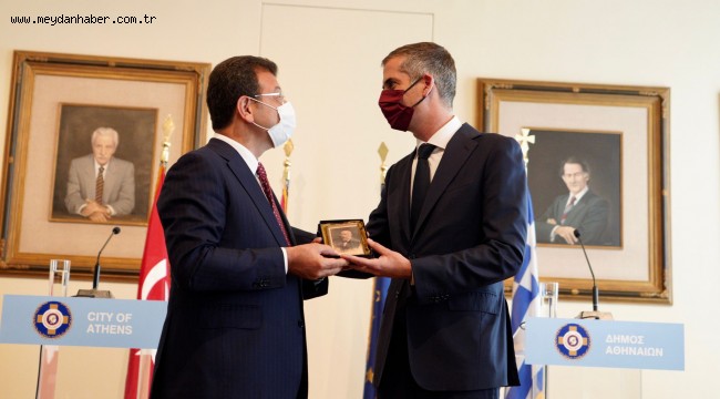 adımla başladığını biliyoruz. Biz de şehirlerimiz arasında bir köprü kurduk. Atinalılar ve İstanbullular bu köprüden geçmeye hazır. Belediyelerin görevi, insanlarımızı ve şehirlerimizi güçlendirecek politikalar üretmektir. Böyle politikalar üretelim ki iklim krizi ile mücadele edelim, ekonomik fırsatlar yaratalım, teknolojik gelişmelere yetişelim, sosyal yaraları tedavi edelim, göçmen meselesine insani ama sınır koyan bir yönetim oluşturalım, kültürel değerleri zenginleştirelim.” İmamoğlu ve Bakoyannis, konuşmaların ardından birbirlerine, yönettikleri şehirleri anlatan karşılıklı hediyeler verdi.