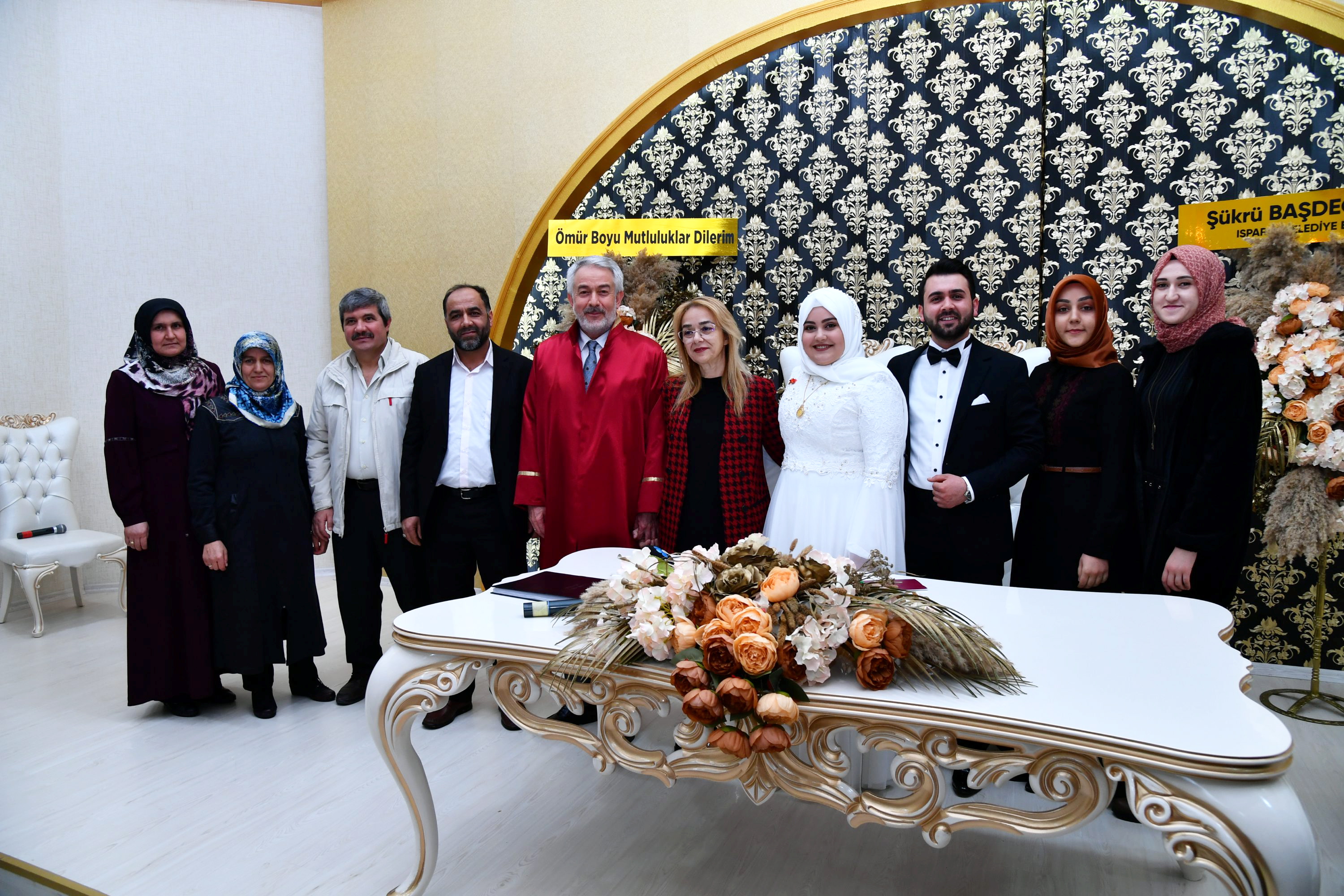 gelenlerle birlikte nikah salonuna geçilirken burada Belediye Başkanı Şükrü