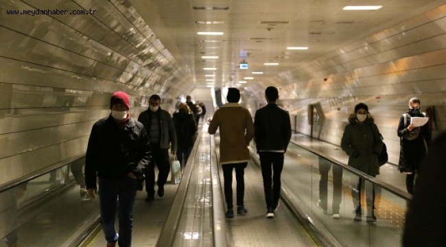 Tramvay ve metrolarda da yoğunluk gözlenirken, yolcuların büyük çoğunluğunun yeni tip koronavirüs (Kovid-19) tedbirleri kapsamında maske taktığı ancak bazı noktalarda sosyal mesafe kurallarına uyamadıkları gözlendi.