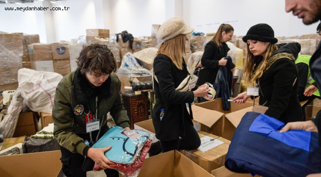 İzmir Büyükşehir Belediyesi’nin afet bölgesi için başlattığı destek çalışmaları artarak devam ederken gönüllüler de yoğun mesai harcadı. Depremin ilk gününden bu yana aralıksız çalışan gönüllüler yardımların toplanma merkezlerinde bölgeye gönderilecek kolileri düzenledi. Depremzedeler için bağışlanan kıyafet, gıda, battaniye ve insani yardım malzemelerinin tasnif ve paketleme işlemlerini yürüten vatandaşlara Ukraynalı gönüllülerden destek de geldi.