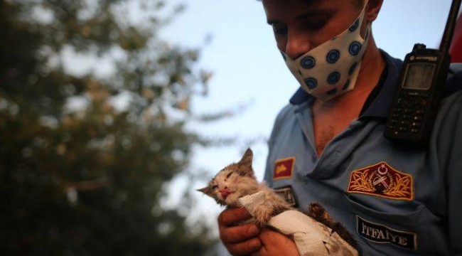 Doğanın zarar görmemesi için canla başla mücadele eden ekipler, aynı zamanda orman içerisindeki canlıların da kurtarılması için de büyük çaba gösterdi. Büyükşehir Belediyesi itfaiye ekipleri, yangın bölgesinde dumandan etkilenen bir kediyi ‘tüm tehlikeleri göze alarak’ kurtardı. İtfaiye ekiplerinin kucağında hayata tutunan kediyi, ekipler su içirerek rahatlatmaya çalıştı. Ekipler, kediyi temizlenmesi, bakımının yapılması ve beslenmesi için veterinerlik görevlilerine teslim etti. Verdikleri mücadeleyle takdir toplayan itfaiye ekipleri, 7/24 tüm canlıların ve doğanın yanında olduklarını bir kez daha gösterdi.