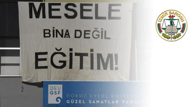 İzmir Barosu, Dokuz Eylül Üniversitesi Güzel Sanatlar Fakültesi binasının Tınaztepe Kampüsüne taşınma kararı ile ilgili açıklamada bulundu. Yapılan açıklamada yeni binada sanat çalışması yürütülmesinin mümkün olmadığı belirtildi.
