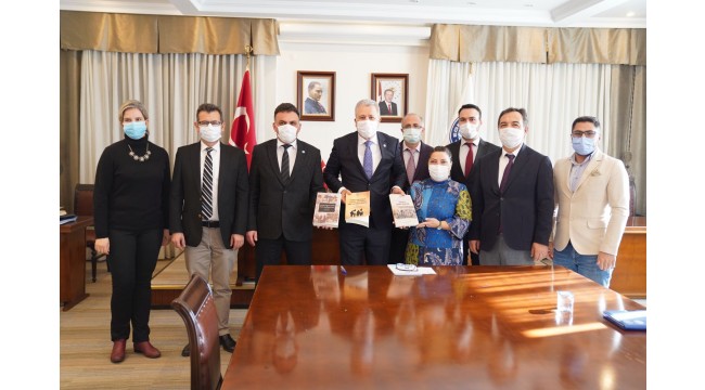 EÜ Edebiyat Fakültesi Dekanı Prof. Dr. Yusuf Ayönü ile birlikte Prof. Dr. Hasan Mert ve Nurullah Kırkpınar’ı makamında ağırlayan EÜ Rektörü Prof. Dr. Necdet Budak, akademisyenleri çalışmalarından dolayı tebrik etti. Rektör Budak, “Üniversitemizin bölge ve ülkeye yönelik olarak, en geniş ve köklü katkı alanlarının başında şüphesiz ki ziraat gelmektedir. Cumhuriyetin ilk yıllarında tarımsal modernleşme amacı ile yürütülen girişimlerin bir ürünü olarak kurulan Bornova Ziraat Mektebi, üniversitemizin de temelini teşkil etmektedir. Zirai eğitim alanında önemli bir yere sahip olan bu mektep, tarımsal alanda yenilikçi eğitim modellerinin uygulanması ile sektörün çağdaş ve bilimsel gelişmeler çerçevesinde ilerlemesi ve nihayetinde ülkemizde modern tarım alt yapısının inşa edilmesi için kurulmuştur. Tarım sektörünün gelişiminde bir dönüm noktasını teşkil eden bu yapılardan birinin üniversitemiz sınırları içinde bulunmuş olması ve kuruluşunda Gazi Mustafa Kemal Atatürk’ü görmek, bizler için bir iftihar kaynağıdır. Ziraat alanında sahip olduğum bilimsel donanımın temellerini attığım bu köklü ve saygın üniversitenin rektörü ve öğretim üyesi olarak, literatüre önemli bir katkı sağlayacağına inandığım bu kitabın oluşmasına katkıda bulunmak benim için ayrıcalıklı bir onurdur. Başta üniversitemizin tarihi olmak üzere, Türkiye’de zirai eğitim konusuna ışık tutan bu eserin, tüm araştırmacılar için faydalı bir kaynak olmasını diliyorum” dedi.