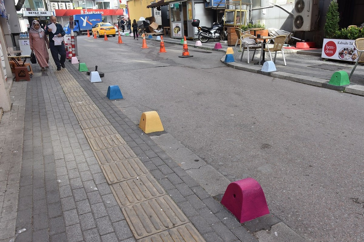 İzmit Belediyesi Park ve Bahçeler Müdürlüğü ekipleri kent merkezinin farklı noktalarında gerçekleştirdiği boyama çalışmaları ile cadde ve sokakları renklendirerek bahara hazır hale getiriyor. Kent merkezinde de çalışmalarını sürdüren belediye ekipleri, Cemil Karakadılar Caddesi’nde kaldırım boyama çalışması gerçekleştirerek, sokağı rengarenk bir görüntüye kavuşturdu. Parklanmayı engellemek için konulan taşlar da, gece karanlığında görünür hale geldi.