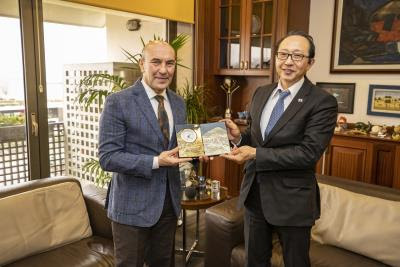 Japonya İstanbul Başkonsolosu Hisao Nishimaki bugün İzmir Büyükşehir Belediye Başkanı Tunç Soyer’i ziyaret etti. Toplantıda karşılıklı ekonomik ve kültürel iş birliğinin arttırılması konuşuldu.