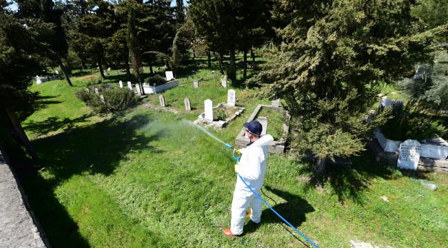 KARESİ'DE MEZARLIK VE BOŞ ARAZİLERDEKİ OTLAR TEMİZLENİP İLAÇLANIYOR