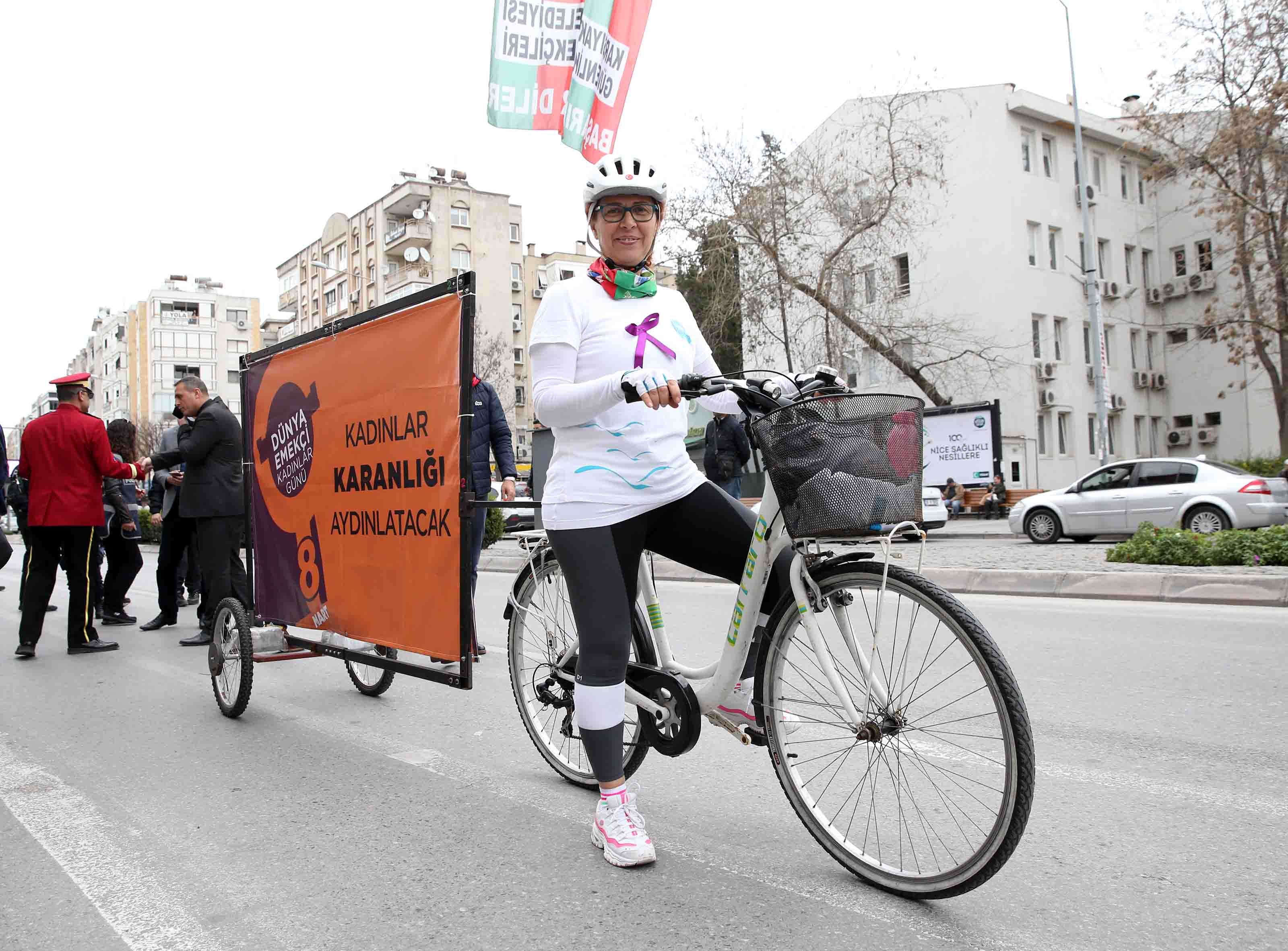 simgeleyen mor renkli kıyafetlerle gerçekleştirilen yürüyüş ve dans gösterisinin yanı sıra, Belediye