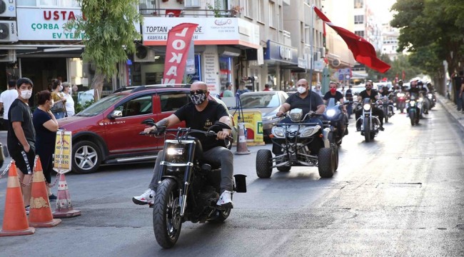 Zübeyde Hanım Anıt Mezarı’na karanfiller bırakan motosikletliler, daha sonra konvoyla heykel önüne geldi. Ellerinde Türk Bayrakları ile alanda buluşan Atatürk sevdalıları, Karşıyaka Belediye Bandosu eşliğinde hep bir ağızdan İstiklal Marşı’nı okudu. Ulu Önder Gazi Mustafa Kemal Atatürk, Bombacı Ali Çavuş ve tüm milli mücadele kahramanları için saygı duruşunda bulunuldu. Pandemi tedbirlerinin uygulandığı programa, Bombacı Ali Çavuş’un kızı Müşerref Sancak ve torunu Devrim Çağlayanırmak da katıldı. Karşıyaka Belediye Başkanı Dr. Cemil Tugay, Devrim Çağlayanırmak’a dedesinin illüstrasyon tekniğiyle hazırlanmış tablosunu da hediye etti.