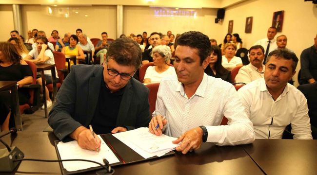 Memurların memnuniyetle karşıladığı toplu iş sözleşmesinin imza töreni Karşıyaka Belediyesi Meclis Salonu’nda gerçekleşti. Adil bir duruş sergileyeceğini belirten Başkan Tugay,”Belediye Başkanı olduğum dönemde; gerçekten çalışan, işinin hakkını veren tüm mesai arkadaşlarımızın gerek işlerini devam ettirmeleri açısından sağlanacak şartlar gerekse emeklerinin karşılığını almaları açısından gerçekten çok adil bir duruş sergileyeceğime, samimi olarak siyaset gözetmeyeceğime dair kişisel duruşumu tekrar burada size ifade etmek istiyorum” diye konuştu. Tugay, sözlerine şöyle devam etti: “Biliyorum ki sizlerle önümüzdeki beş yıl çok güzel günleri birlikte yaşayacağız. Ama şundan eminim belediye başkanı olarak ben size ne kadar değer verdiğimi gösterirsem, sizler de bu kuruma ne kadar sahip çıktığınızı, ne kadar ait olduğunuzu gösterebilirseniz; o zaman bu keyfi, mutluluğu, başarıyı hep birlikte yaşarız. Önümüzdeki zorlu sıkıntılı günlerde lütfen yardımcı olun. Hep birlikte belediyeyi mümkün olan en iyi hizmet noktasına getirelim. Hiç kimsenin hakkını yemeyecek şekilde bu belediyeyi yürütmeyi yönetmeyi hep birlikte başaralım. Bu görüşmeler sırasında uyumlu, anlayışlı, saygılı tavırları için sendika temsilcilerimize çok teşekkür ediyorum. Emekleriniz için de ayrıca teşekkür ediyorum, toplu iş sözleşmesinin de hayırlı olmasını diliyorum.”