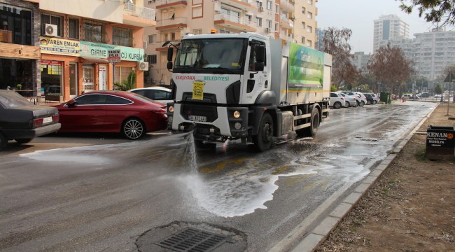 Ayrıca Karşıyaka Belediyesi, koronavirüs salgınına karşı dezenfeksiyon ve temizlik çalışmalarını da yoğunlaştırdı. Bu çerçevede; eczaneler, taksi durakları, muhtarlıklar, belediye tesisleri, metro girişleri, pazar yerleri, yeraltı çöp konteynerlerinin çevreleri ve ortak kullanımda olan pek çok alanda, Sağlık Bakanlığı’ndan onaylı özel ilaçlarla dezenfekte işlemleri yapıldı. Belediye Çevre Müdürlüğü ekiplerince yürütülen uygulamanın düzenli olarak sürdürüleceği belirtildi. Temizlik İşleri Müdürlüğü ekipleri tarafından da çöp konteynerleri yıkanıp dezenfekte edilirken; Karşıyaka Çarşısı ile Örnekköy, İmbatlı, Latife Hanım, Şemikler, Bostanlı ve Zübeyde Hanım gibi mahallelerde yapılan ilaçlı suyla yol yıkama ve temizlik işlemlerinin de ilçe genelinde yoğun şekilde devam edeceği kaydedildi.