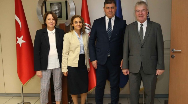 Karşıyaka Belediye Başkanı Dr. Cemil Tugay, Almanya’nın Hamm Belediyesi’nden kente gelen heyeti ağırladı. Hamm Belediyesi Sağlık, Gençlik ve Sosyal İşler Daire Başkanı Theedor Hesse, Uluslararası Sosyal İşler Proje Koordinatörü Sema Ataklı ve Yaşlanma Proje Koordinatörü Petra Rose’un katıldığı ziyarette, ikili ilişkilerin güçlendirilmesi kararlaştırıldı.