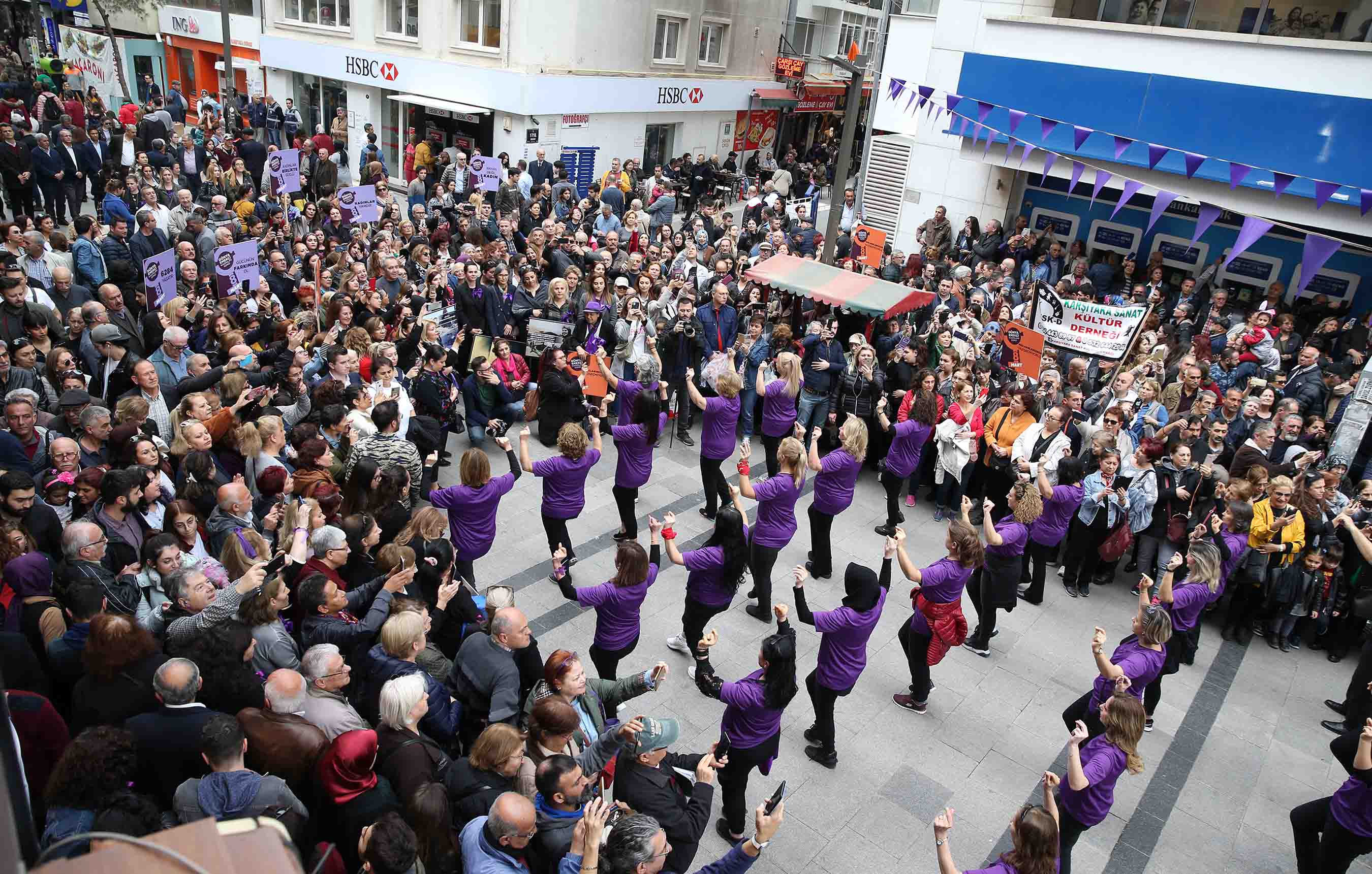 Karşıyakalı kadınlar, Dünya Emekçi Kadınlar Günü dolayısıyla Karşıyaka Belediyesi tarafından düzenlenen yürüyüşte tek ses tek yürek oldu, eşitlik ve adalet çağrısı yaptı. Kadın dayanışmasını simgeleyen mor renkli kıyafetlerle gerçekleştirilen yürüyüş ve dans gösterisinin yanı sıra, Belediye Tiyatrosu’nun sahnelediği oyunla, kadınlara yönelik şiddet ve taciz olaylarına dikkat çekildi.