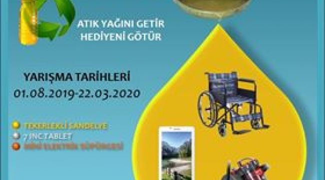 Yarışmanın sonunda, en çok atık yağ toplayan mahalle muhtarlıklarına; tekerlekli sandalye, tablet ve elektrikli süpürge hediye edilecek. 1 Ağustos’ta başlayan organizasyon, 22 Mart 2020’ye kadar devam edecek.