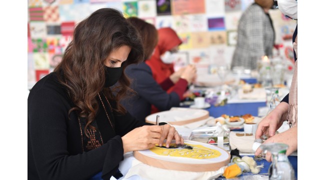 atölyelerde gönüllü kursiyer kadınlara, Anneler Günü’ne kadar kasnak nakışı eğitimi
