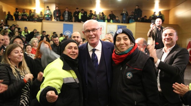 İktidarın yanlış politikalarına itirazın örgütlü sendikal mücadeleyle olabileceğine dikkat çeken Başkan Kurt, “Ama ne yazık ki Türkiye'de bu örgütlü sendikal mücadeleyi yapacak sendikada yok. Bu noktada ben solcu, sosyal demokrat bir belediye başkanı olarak bu ücretin yetmeyeceğini, yüzde 38’in bizim işçi ve emekçilerimizin karnını doyurmayacağını biliyorum. O nedenle ek protokol yapıyoruz. Tayyip Erdoğan'ın verdiğinin üstüne yüzde 30 daha fazla veriyoruz” diye konuştu. Ak belediyeciliğin 3 ayda bir maaş almak, işçinin maaşından önce taşeronun parasının ödenmesi demek olduğunu söyleyen Başkan Kurt, “10 yıldır belediye başkanlığınızı yapıyorum. 10 yılda maaş ödemelerinin bir saat aksadığını gösteren, söyleyen varsa ben bu işi bırakırım” diye konuştu. Türkiye’de alım gücünün düştüğünün altını çizen Başkan Kurt, konuşmasını şu sözlerle sürdürdü: “100 bin lira da maaş versek, paranın satın alma gücü olmadığı sürece hiçbir işe yaramaz. Türkiye'de paranın satın alma gücünü de bu noktaya düşüren AKP iktidarıdır. AKP'nin savurgan harcamalarıdır. AKP'nin kötü yönetimidir. Bunları bilmeniz lazım. Bunlara itiraz etmeniz lazım. Bu itiraz da gerekiyorsa sokakta olmalıdır. Gerek yoksa eylemle olmalıdır. Beş yılda bir kerede bir oyla olmalıdır. Oyunuzu verirken hala annemin partisi, babamın partisi diye oy vermeye devam ederseniz daha çok açlıkla karşı karşıya kalırsınız. Türkiye'nin ekonomisi kötü yönetiliyor. Türkiye'nin hukuku kötü yönetiliyor. Türkiye'nin idaresi kötü yönetiliyor. Bunun ilacı, sosyal demokrat bir iktidardır. Bu oyu da bizden esirgerseniz açlık kaçınılmazdır, çünkü hiçbir belediye başkanı toplu iş sözleşmesiyle taahhüt ettikten sonra altı ayda bir ek protokolle sözleşme imzalamaz. Ancak biz imzalarız. Emeğin hakkını bilen, emekçinin çektiği sıkıntıyı bilen, emeklinin çocuğunun çoluğunun geleceğini düşünen politikacılar olarak biz imzalarız. Ben iddialı bir belediye, iddialı bir politikacı, iddialı bir solcu olarak konuşuyorum; emekçi arkadaşlarımız uyanmadığı sürece açlık kaçınılmazdır.” Başkan Kurt’un açıklamasının ardından işçiler hep birlikte ayağa kalkarak ‘Halkçı Başkan” sloganları atarak, Başkan Kurt’u ayakta alkışladı.