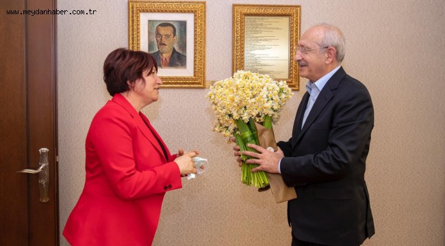 Parti Genel Merkezi’ndeki ziyarette, Kılıçdaroğlu’na Karaburun’un simgelerinden nergis çiçeklerini ve Belediyeye ait fabrikalarda kadınların ürettiği peynir ve zeytinyağını da armağan eden Erdoğan, “Karaburun’daki hemşehrilerimin ve üreticilerimizin selam ve teşekkürlerini, kendi ürettiğimiz ürünler ve nergislerimiz ile birlikte Sayın Genel Başkanımıza takdim etmekten mutluluk duydum.” dedi.