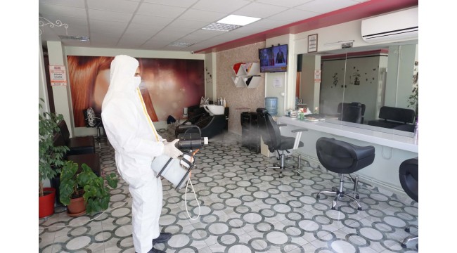 Kemalpaşa'da berber ve kuaförler dezenfekte ediliyor