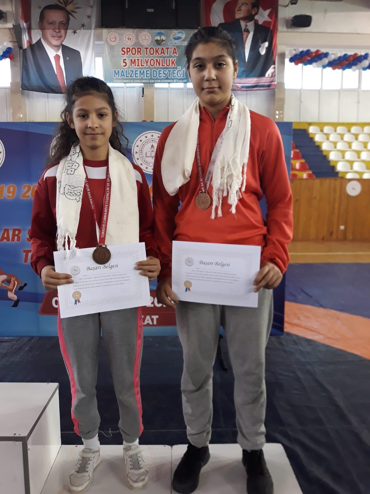 Tokat’ta gerçekleştirilen ve 270 sporcunun katıldığı Okullar Arası Yıldız Kızlar Türkiye Güreş Şampiyonasından Kepez Belediyespor Kulübü güreşçileri 2 bronz madalya ile döndü. Okullar Arası Yıldız Kızlar Türkiye Güreş Şampiyonasında Kepez Belediyespor Kulübü alt yapısında yetişen 36 kilogramda Elif Atakan ve 62 kilogramda Çisem Önder Türkiye 3.sü oldu. Tarif edilemez bir mutluluk yaşadığını dile getiren Çisem Önder, “Hedefim Türkiye birincisi olmak. Bizleri her alanda yalnız bırakmayan Belediye Başkanımız Sayın Hakan Tütüncü’ye ve Kepez Belediyespor Kulübü Başkanımız Hakan Çatal ve antrenörlerimize çok teşekkür ediyorum” dedi. 62 Kilogramda Türkiye 3. sü olan Elif Atakan’da “Kepezimizi ve Antalya’mızı en iyi şekilde temsil ettik. Hedefimiz Türkiye Birinciliği… Bizleri destekleyen başkanlarımıza ve kulübümüze teşekkürler” diye konuştu.