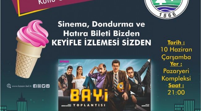 Keşan Belediyesi ayrıca sinemayı izlemeye gelenlere dondurma ve hatıra bileti hediye edecek.