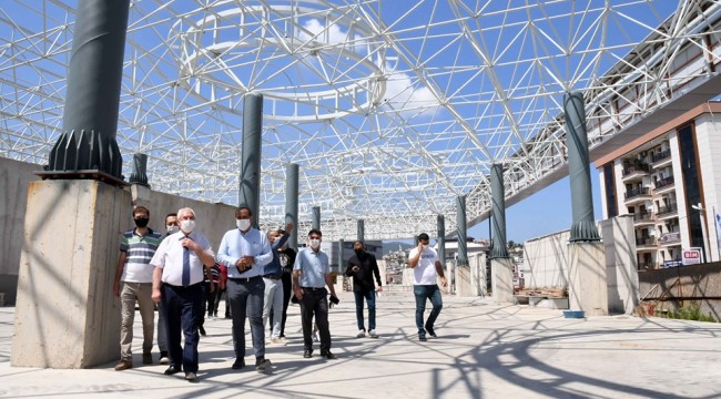 Uzay çatısı kapanma aşamasına gelen tesisi inceleyen Başkan Selvitopu, pazaryeri, düğün salonu, taziye evi, belediye birimleri olarak kullanılacak alanları tek tek gezdi. Aydınlatmadan havalandırmaya kadar teknik ayrıntılarla ilgili bilgi aldı.