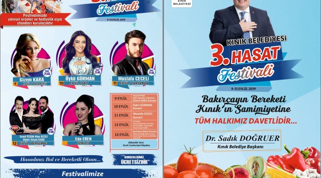 Festivalle ilgili konuşan Kınık Belediye Başkanı AK Partili Sadık Doğruer, "Kuzey Ege'nin parlayan yıldızı Kınık ilçesini tanıtmak için başlattığımız hasat festivalinin bu yıl 3. düzenliyoruz imza günlerinin ve yöresel ürünlerin tanıtımlarının yer alacağı hasat festivali ile hem çiftçilerimizin yorgunluklarını atabileceği hem de yöresel ürünlerin tanıtılacağı stantlarla ilçemizin tanıtımını sağlayacağız. Tüm vatandaşları 5 gün sürecek olan hasat festivalimize bekliyorum" dedi.
