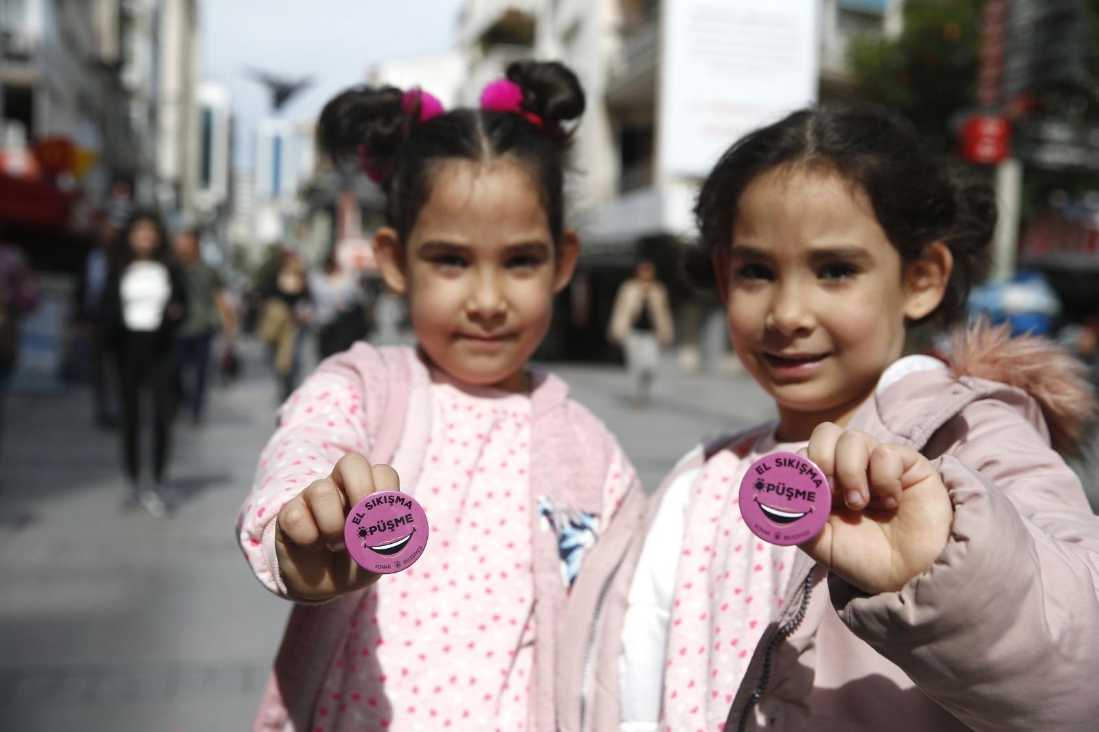 “El sıkışma, tokalaşma” rozetleri dağıtıldı