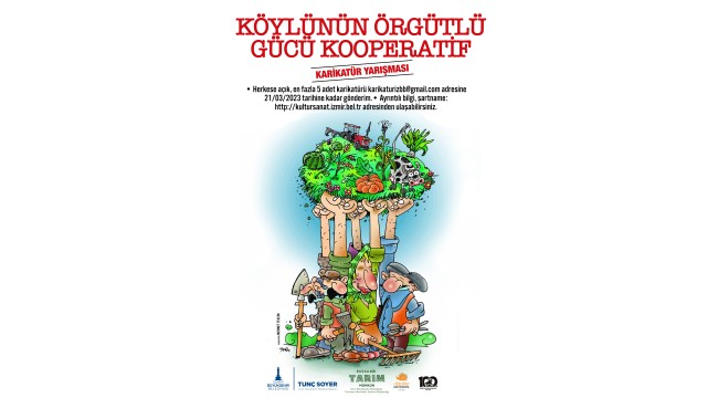 İzmir Büyükşehir Belediyesi “Köylünün Örgütlü Gücü Kooperatif” temasıyla 2’nci kez ulusal karikatür yarışması düzenliyor. Başkan Tunç Soyer’in desteklediği ve kent ile kırsal arasındaki en büyük kopmaz bağ üzerine temellenen kooperatifçilik anlayışı çizgilere konu oluyor. “Köylünün Örgütlü Gücü Kooperatif” Ulusal Karikatür Yarışması için çizerler 21 Mart 2023 tarihine kadar başvuru yapabilecek.
