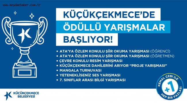 Küçükçekmece Belediyesi, 2021/ 2022 eğitim öğretim yılında ‘Ata’ya Özlem’ Konulu Şiir Okuma Yarışması, ‘Küçükçekmece Dâhilerini Arıyor’ Proje Yarışması, Mangala Turnuvası, Çevre Konulu Resim Yarışması, ‘Yetenekliseniz’ Ses Yarışması, 7. Sınıflar Arası Bilgi Yarışması düzenleyecek. Yarışmalar hakkında detaylı bilgi almak isteyenler https://kucukcekmece.istanbul/yarismalar/ adresini tıklayabilir ya da 444 4 360/8965 no’ lu telefonu arayabilir.