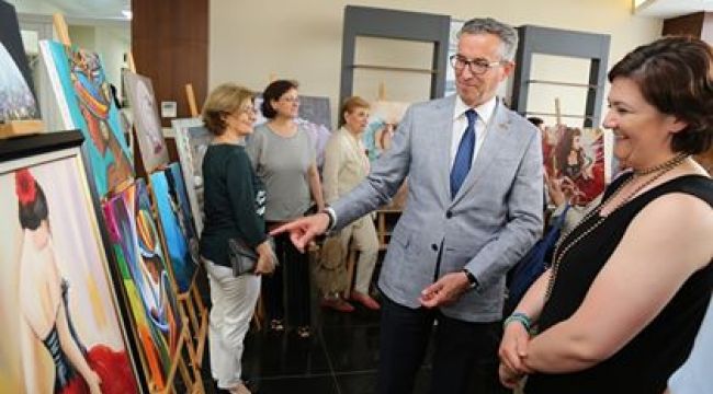 Gaziemir Belediyesi’nin düzenlediği resim kursuna katılan kursiyerlerin çizdiği yağlı boya resimler Belediye Hizmet Binası fuaye alanında düzenlenen sergiyle sanatseverlerin beğenisine sunuldu