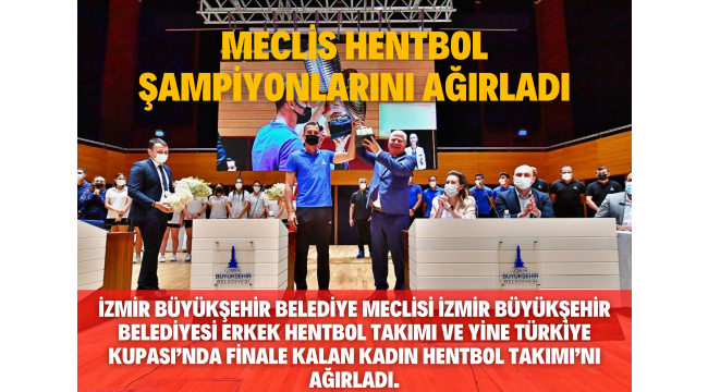İzmir Büyükşehir Belediye Meclisi’nin Haziran ayı olağan toplantısının ikinci oturumu Türkiye Kupası’nı kazanan İzmir Büyükşehir Belediyesi Erkek Hentbol Takımı ve yine Türkiye Kupası’nda finale kalan Kadın Hentbol Takımı’nı ağırladı. Sporculara Meclis’te plaket verildi.
