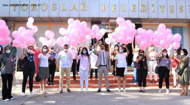 Belediye hizmet binası önünde toplanan Toroslar Belediyesi personeli, düzenlediği etkinlik ile meme kanserinde erken teşhisin önemini vurguladı. Meme kanseri ile mücadelenin simgesi pembe kurdeleleri takarak pembe balonları gökyüzüne bırakan belediye personeline, vatandaşlar da destek verdi.