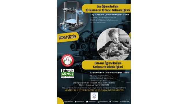 Menteşe Belediyesi Kodlama ve Robotik ile 3D Tasarım ve Yazıcı Eğitimlerine başvurular 01