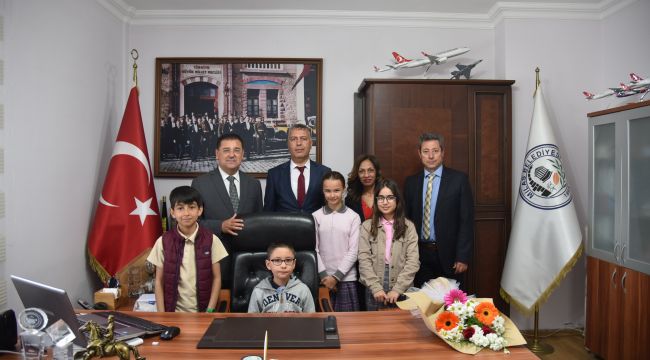Bütün öğrencilerin 23 Nisan Ulusal Egemenlik ve Çocuk Bayramı’nı kutlayan Başkan Tokat, kendisini ziyaret eden çocuklara belediyenin sorumlulukları ve çalışmaları hakkında bilgi verdi.