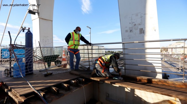 Büyükşehir tarafından İzmit Mimar Sinan Üstgeçidi başta olmak üzere yapısal bozukluk tespit edilen tüm üstgeçitlerde bakım, onarım çalışmaları yapılıyor