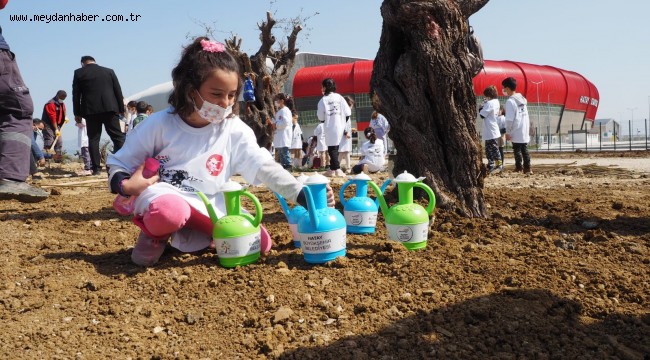 minik elleriyle hayat verdikleri fidanların can suyunu vermeyi unutmadı.