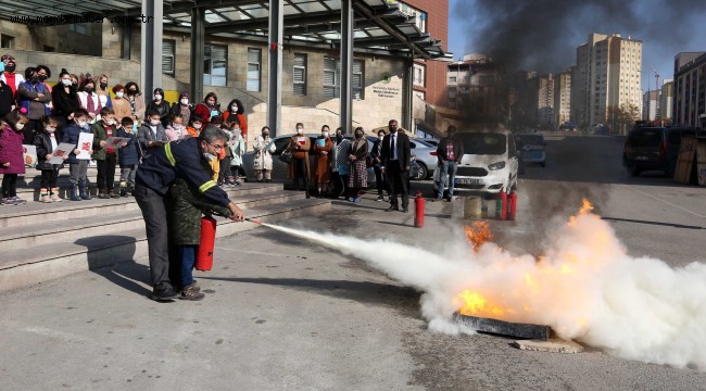 *Minik itfaiyeciler tatbikat yaptı