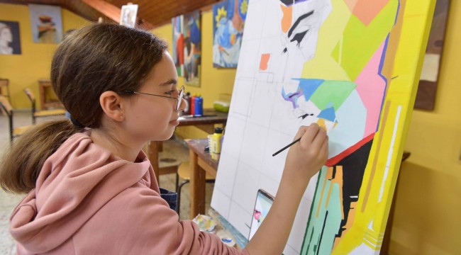 Minik ressamlar tuval başında