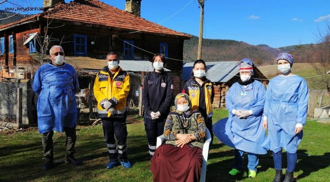 75 yaşındaki Hamide Gedik, aşı için gelen ekibi karşılarında görünce çok mutlu olduklarını söyledi.