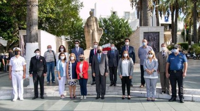 Bodrum Belediye Meydanında düzenlenen törene, İlçe Kaymakamı Bekir Yılmaz, Belediye Başkan Vekili Ayşenaz Gültekin Öncel, Bodrum Muhtarlar Derneği Başkanı Cumhuriyet Mahallesi Muhtarı Ahmet Cemil Gündüz, Belediye Başkan Yardımcıları Ummahan Yurt ile Emel Çakaloğlu, CHP İlçe Başkanı Halil Karahan, merkezi bölgedeki mahalle muhtarları ve bazı daire amirleri katıldı.