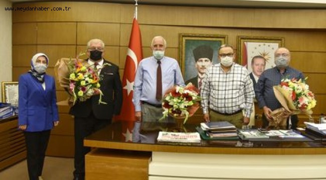 19 Ekim Muhtarlar Günü kutlamaları kapsamında Merkez Muhtarlar Derneği Başkanı Ertuğrul Okusal, Faal Muhtarlar Derneği Başkanı Hadi Karabulut ve Merkez Mahalle Muhtarları Derneği Başkanı Ali Şahin Belediye’yi ziyaret etti.Dernek Başkanı Muhtarlar, başkanlık makamında Belediye Başkanvekili Hasan Yılmaz ile bir süre görüşerek sohbet etti. Karşılıklı olarak fikir alışverişinde bulunulan ziyarette Başkanvekili Yılmaz tüm muhtarların 19 Ekim Muhtarlar Günü’nü kutlayarak: “Vatandaşlarımız ile aramızda köprü vazifesi gören tüm mahalle ve köy muhtarlarımızın ‘Muhtarlar Günü’nü kutluyor, görevlerinde kolaylıklar diliyorum” dedi. Başkanvekili Yılmaz tarafından muhtarlara çiçek taktim edildi.