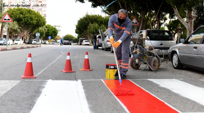 Stadı ve spor salonunun bulunduğu Meltem Mahallesi’nde yaya geçitlerine kırmızı çizgiyi çekti. Trafik