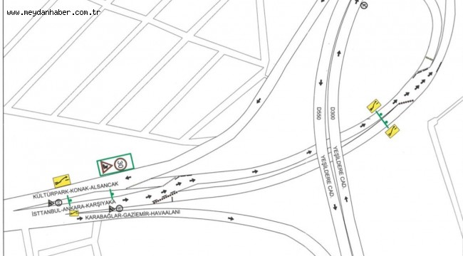 İzmir Ana Kuşaklama Kanalı kolektöründe yapılacak temizlik, bakım ve onarım çalışmaları kapsamında 14 Eylül Salı gecesinden itibaren Yeşildere'den Mürselpaşa Bulvarı'na dönüş yolu trafiğe kapatılacak. Yeşildere Caddesi'nden Basmane yönüne gitmek için eski DGM Binası önünden ya da Halkapınar köprüsünün altından dönüş yapılabilecek. Mürselpaşa Bulvarı'ndan Karşıyaka-Bornova yönüne gidiş yolu, çalışma süresince karşı şeride alınacak. Trafik düzeninin 15 gün içinde normale dönmesi planlanıyor.