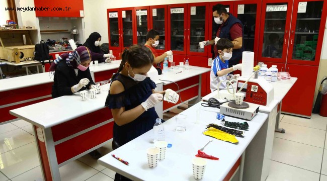 Bu amaçla binadaki İbn-i Sina Eğlenceli Bilim Atölyesi’nde öğrencilere doğal malzemelerle plastik üretimi eğitimi veriliyor. Eğitimci Aytekin Beşik, çocuklara muz kabuğu, patates ve nişasta içerikli gıdalardan biyoplastik üretmeyi öğretiyor. Herkesin kendi evinde bunu yapabileceğini belirten Beşik, nişastayla plastik üretimi aşamasını şöyle anlattı: “6 çay kaşığı miktarındaki nişastanın içerisine 50 mililitre su koyuyoruz. Bunları karıştırıyoruz. Daha sonra gliserin ve sirke ekliyoruz.Bu nişastayı glikozlarına kadar parçalar. Karışımı kaynatıp pişirdikten sonra 3 gün bekletiyoruz ve plastik elde ediyoruz. Etüv makinesine koyduğumuzda ise 70 derece içinde bir saatte kurur.Bu işlem için muz kabuğu, patates ve bozulmuş sütlerden yararlanabiliriz. Nişasta içeren her türlü yiyecek plastik üretmek için uygundur” dedi.