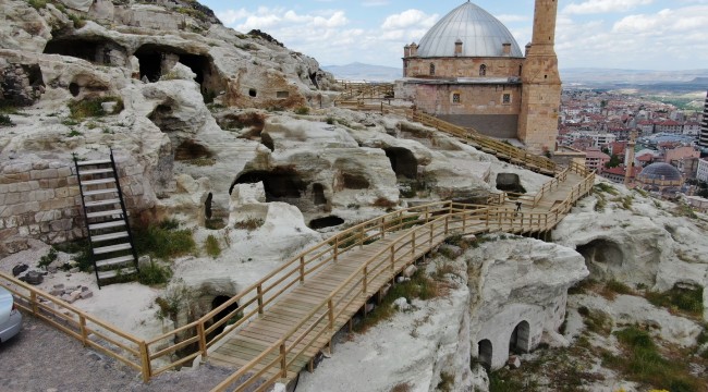 Kilise var. Yani bölgemiz tamamıyla kompleks halinde ciddi bir enstrümandı. Biz vaat ettiğimiz şeyi gerçekleştirmek için bir emek sarf ettik. Bu emeğimizin karşılığında bize destek olan başta Cumhurbaşkanımız Recep Tayyip Erdoğan olmak üzere Turizm Bakanımıza da gerçekten teşekkür ediyorum. Turizm Bakanımızın bölgemizi ziyaretiyle birlikte buradaki potansiyeli görmesiyle her türlü desteği vereceğini ifade etti. Bizde iyi bir hamle başlattık. Hem bir taraftan yenileme alanında çalışmalarımızı yürütürken diğer taraftan koruma amaçlı imar planlarını yapıyoruz. Koruma amaçlı imar planlarını yaparken de burayı turizme açma çalışmalarını hızlı bir şekilde yürütüyoruz. Burada turizme açmayla alakalı iki aşamalı bir planımız vardı. Bunun birinci aşaması var olan ören yerlerinin, kalenin, kilisenin turizme açılması ikincisi de mimariye uygun bir şekilde bizim tarihi kültürel doğal yapılarımıza hiçbir şekilde zarar vermeden butik otellerin, çarşıların, sosyal alanların, kültürel faaliyet yapacağımız alanların, müzelerin, galerilerin oluşturulmasıydı. İkisi tabi ki birbirinden çok farklı şeylerdi. Birinci aşamada bizim burayı turizm destinasyonu haline getirip artık ören yerlerimizi turistlerin gezmesini temin etmek istiyorduk. Bunun için belediyenin neredeyse tüm imkanlarını buraya seferber ettik. İlk önce ana hattı kale bölgemize ve arka taraftan Aksaray yoluna bağlayacak özel bir yol yaptık. Kalemize giden tüm yolları kaldırım taşları, arnavut taşlarıyla iyileştirerek kaleyi bu işin içine çekecek bir hale getirdik. Beraberinde ören yerlerini gezmek için gezi güzergahları oluşturduk. Ahşap yollar ile birlikte artık bir insanımız gelecek ören yerlerini gezecek. Beraberinde Meryem Ana Kilisesini kaleye bağlayacağımız yollarda yapım aşamasındayız. Meryem Ana Kilisesi ile ilgili çalışmalarımız bitti. Kültür ve Turizm Bakanlığımız tarafından yakın zamanda buranın restorasyonu başlayacak. Burası gerçekten şehir turizmine, ülke turizmine ve dünya turizmine başka bir renk başka bir heves getirecek.” diye konuştu.