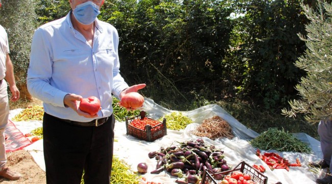 Ödemiş Belediye Başkanı Mehmet Eriş, ata tohumlarıyla oluşturulan bahçedeki ikinci ürün hasadına belediye başkan yardımcıları ile birlikte katılarak çalışmada emeği olanları tebrik etti.