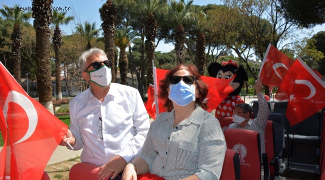 araçlarından oluşan konvoyla marşlar eşliğinde Ödemişlilerin bayramını kutladı. Saatler