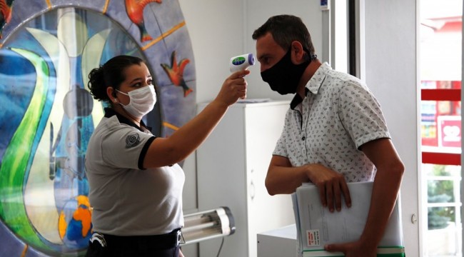 Odunpazarı Belediyesi, artan koronavirüs vakalarına karşı hizmet binasında personel ve vatandaşların güvenliği için de üst düzey önlemler aldı. Periyodik olarak ilaçlanan hizmet binası girişinde tüm çalışan ve vatandaşların ateşi temassız termometreler ile ölçülüyor. Yapılan ölçümlerde ateşi 38 üzerinde olan personel ve vatandaşlar tedbir amaçlı sağlık birimlerine yönlendiriliyor. Ayrıca, maskesi olmayana bina girişinde maske veriliyor. Gerekli önlemleri alan temizlik personeli ise bina içinde sürekli temizlik ve dezenfeksiyon çalışması yapıyor.