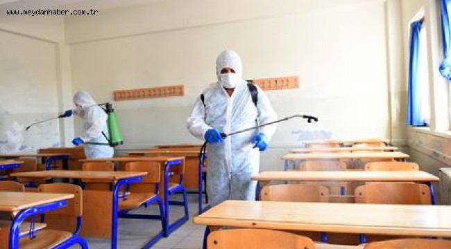 Belediyenin Temizlik İşleri Müdürlüğü bünyesindeki dezenfekte ekibi, 12 Ekim Pazartesi ilkokullar, 8 ve 12’nci sınıflar ile özel gereksinimli çocuklar için yüz yüze eğitimin başlayacağının açıklanmasının ardından çalışmalarını okullarda yoğunlaştırdı. Okulların taleplerine bağlı olarak ekipler, gittikleri her okulda sıralardan tırabzanlara ve kapılara öğrencilerin temas edebileceği her yüzeyi dezenfekte ediyor.
