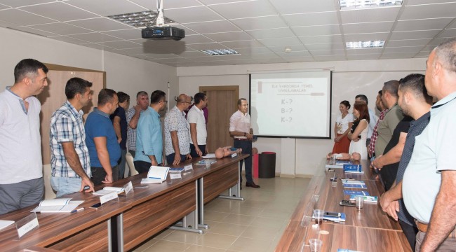 İlk yardım eğitimleri kapsamında personele; iş kazası, ev kazası, trafik kazası ve hastalık gibi hayati tehlike oluşturacak durumlarda nasıl davranmaları ve müdahale etmeleri gerektiği konusunda bilgi aktarıldı.